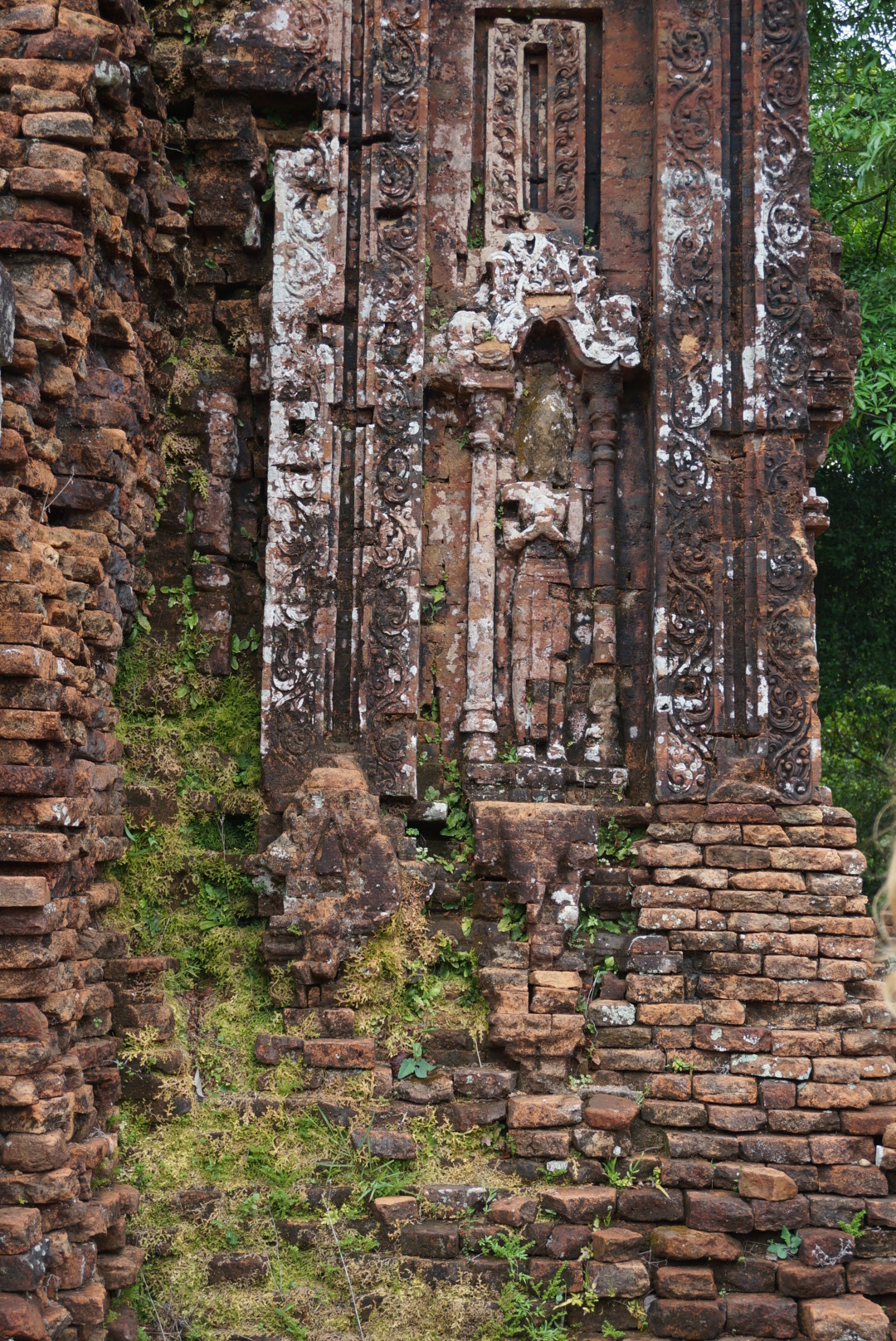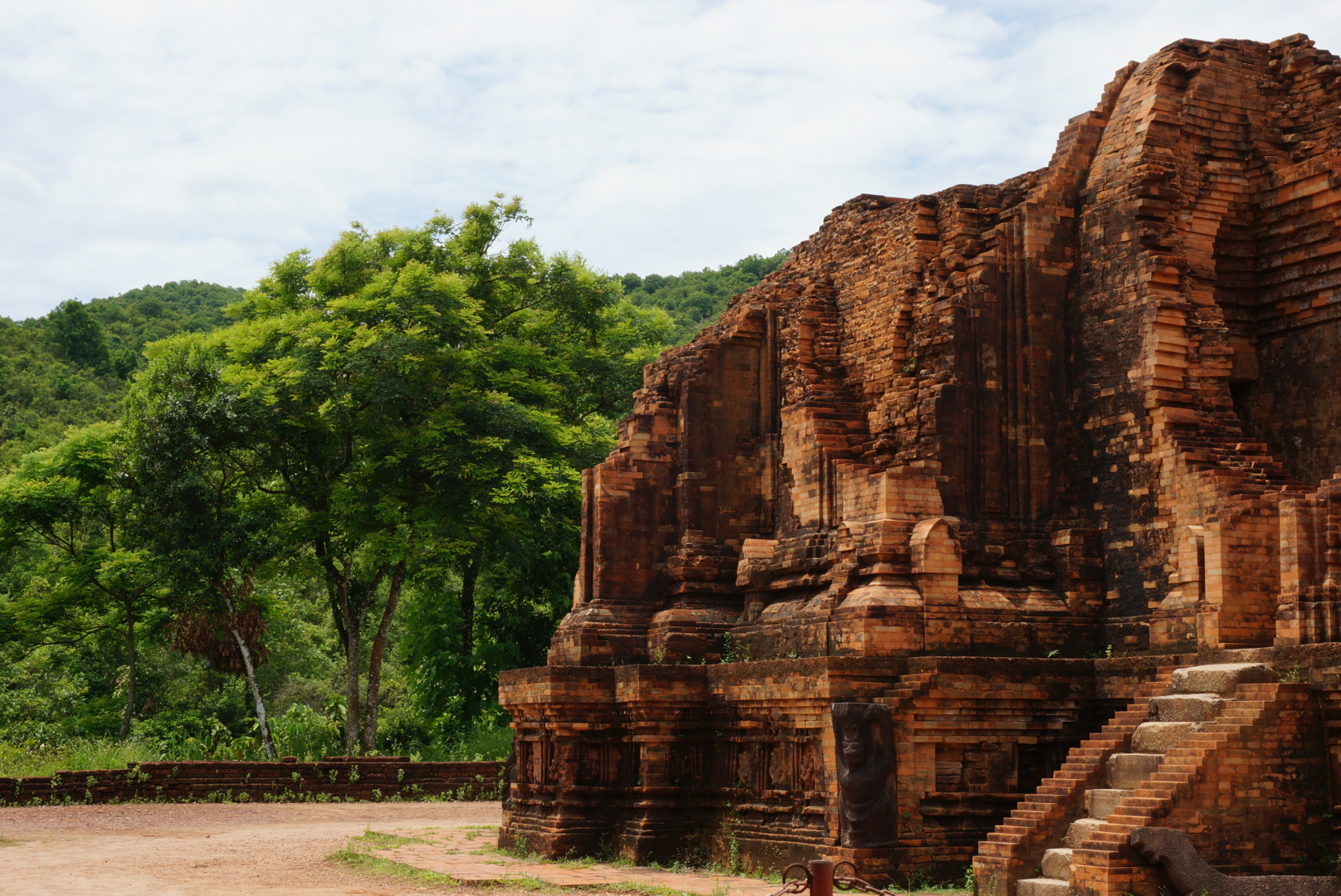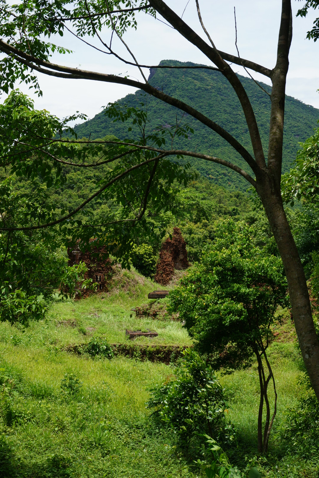 During our stay in Hoi An we went to visit old ruins of an sactuary called My Son (pronounced something like ‘mee son’). It was built for the god Shiva by a hinduist tribe called Champa. It was bombed heavily during the war so there isn’t so much left of it. We saw a lot of sink holes caused by bombs around, now already covered by grass. The area itself was beautiful, far away of the main roads and surrounded by dense jungle, in the foot of their holy mountain. It took us one hour with the bus from Hoi An to get to the area and then we went on to the sactuary with electric cars like from Jurassic park.