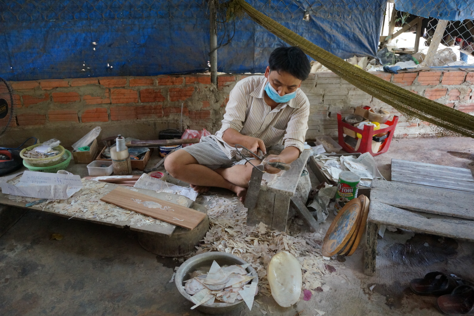 After visiting My Son we took a boat ride to a Cam Kim island. The island is famous for wood carving, boat building and other handcrafts. For example, we saw how the shell art is made – you would think that nowadays such fine details are made with laser cutting, but here they do it by hand, with a saw.