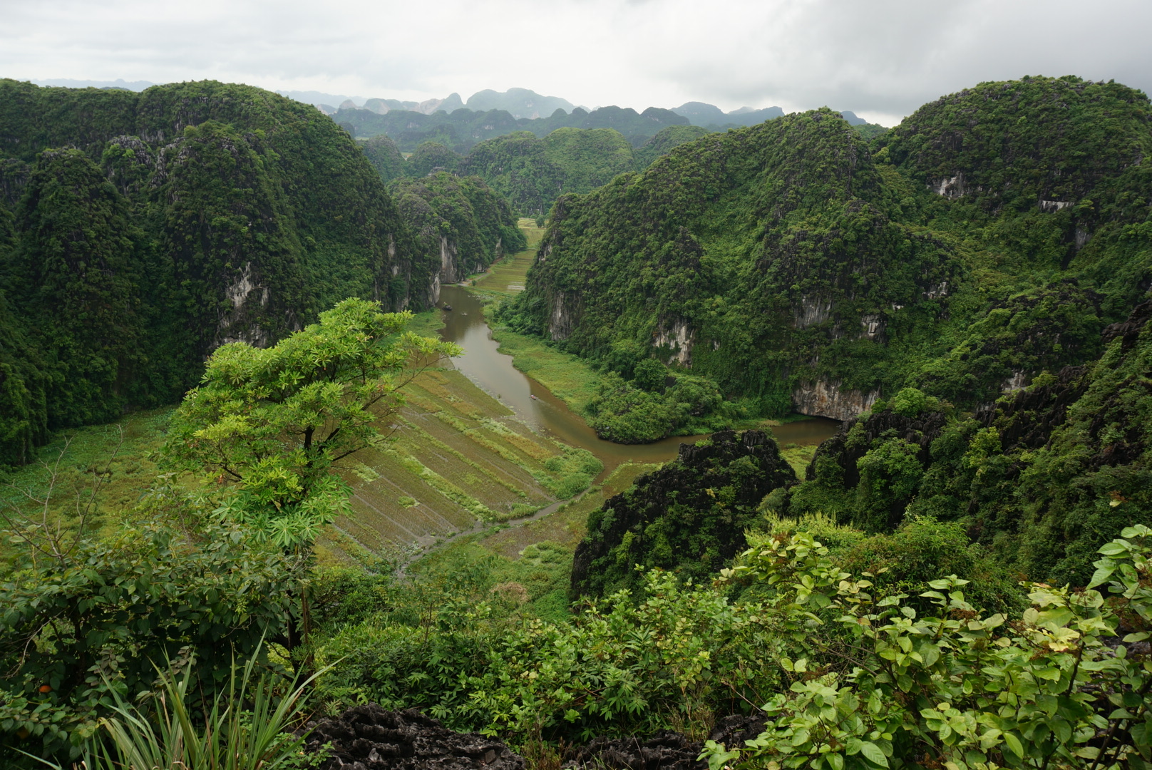 We had breakfast at our homestay and went biking to look for a place called Mua cave that was nearby. We actually didn’t find the cave but we found stairs heading up to a hill to a lookout where you could see almost the whole area.