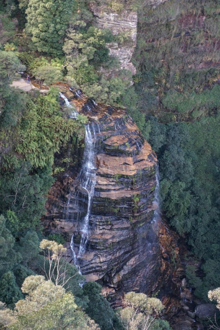 On the valley floor we could feel really small among the huge trees and cliffs. There we also different birds and we got almost hit by a red parrot. Continuing our way we got to admire the white giants aka eucalyptus trees, nice waterfalls and Leura cascades and some more views. So the Blue Mountains were a really good beginning to our Australian adventure.