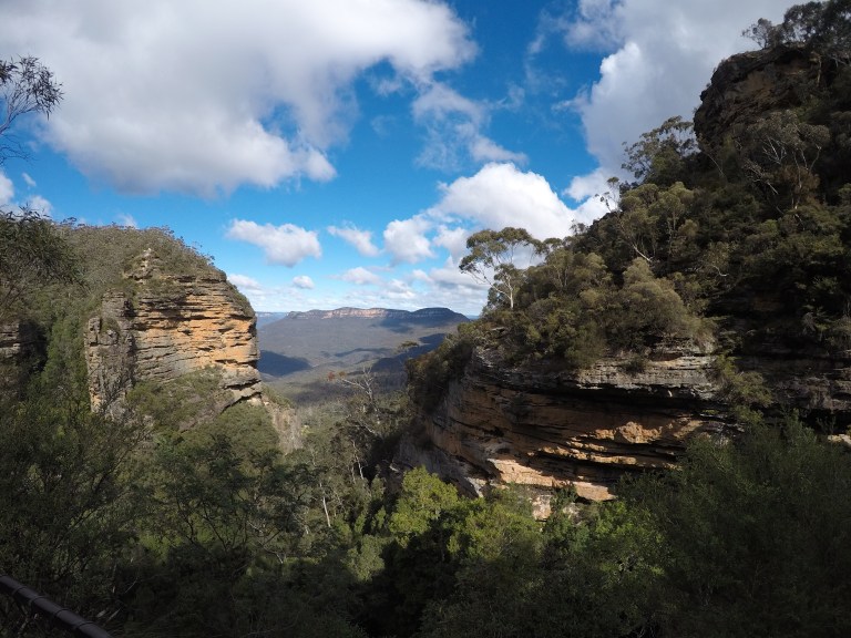 We took a train to a small town in Blue Mountains, Katoomba. What a lovely calm place it was with its cafes and street art walk. What we did not expect was that it was much colder there than in Sydney, and we actually regretted not having taken the warm gloves, especially when the freezing wind started blowing. But after a warming coffee and tea we headed to the main attraction – the national park.