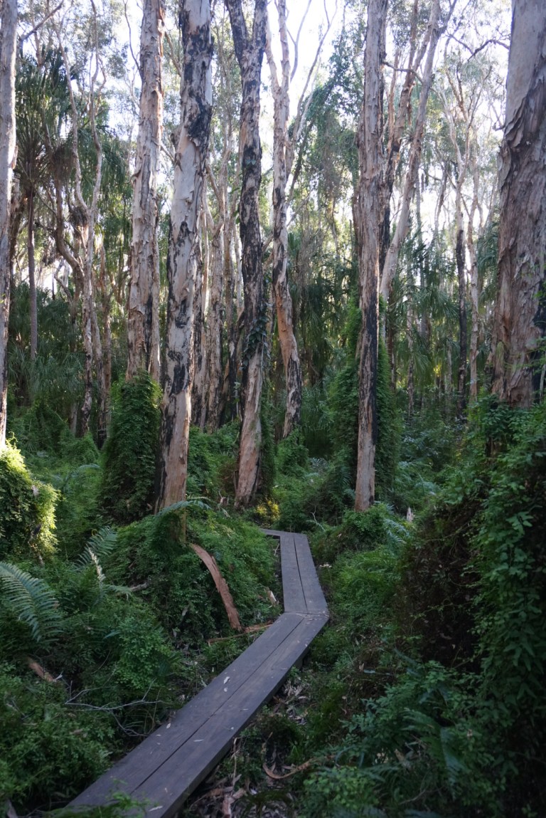 The last day in Agnes Water we decided to take a surf lesson (only 17$!). Although the wind was indeed strong as predicted, the waves were really small and it was almost impossible to catch them without an extra push from an instructor. Anyway it was still great fun and a nice way to spend a Saturday. In the evening we also went for a little walk in the local paperbark forest, which looked almost enchanted with its charming little boardwalks.