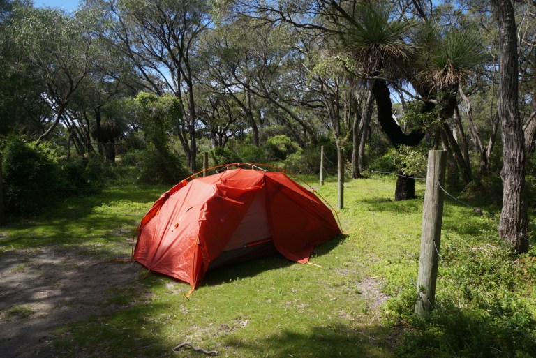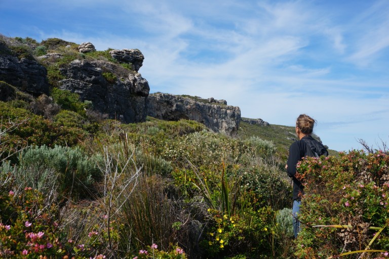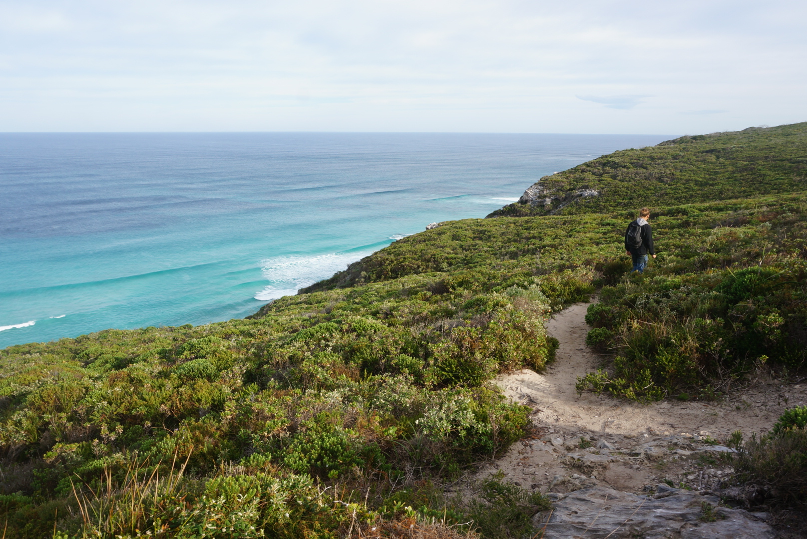 The next day we started with a walk. A 5-7 day Cape to cape track went past our camping grounds. We only did a half a day walk on that trail from Conto to Bob’s hollow. The trail followed the coastline, most of the way going between low shrub. On the way we got to see beautiful cliffs and wildflowers. Close to our turning point we followed a path down from the cliff to see a small cave and took a rest on a stony beach. On our way back we spotted a lone surfer trying to catch some waves.