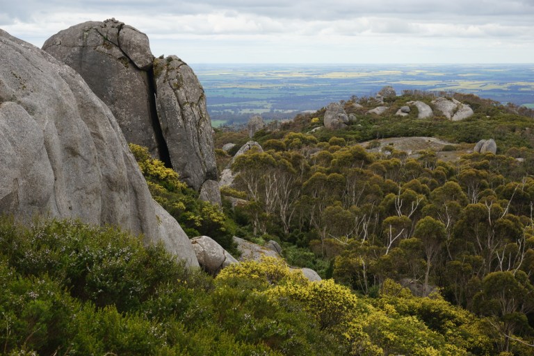 First morning we drove about 40 minutes from Albany to Porongurup national park. We did there 3 different walks. First we did the most famous one – the Granite Skywalk. It was a 2,2 km (one way) uphill walk to rock formations called balancing rocks. In the end there was a small climb between the rocks and a ladder that led to a platform that was bolted to the rock. From there we could see the trees below us and the city of Albany in the distance.