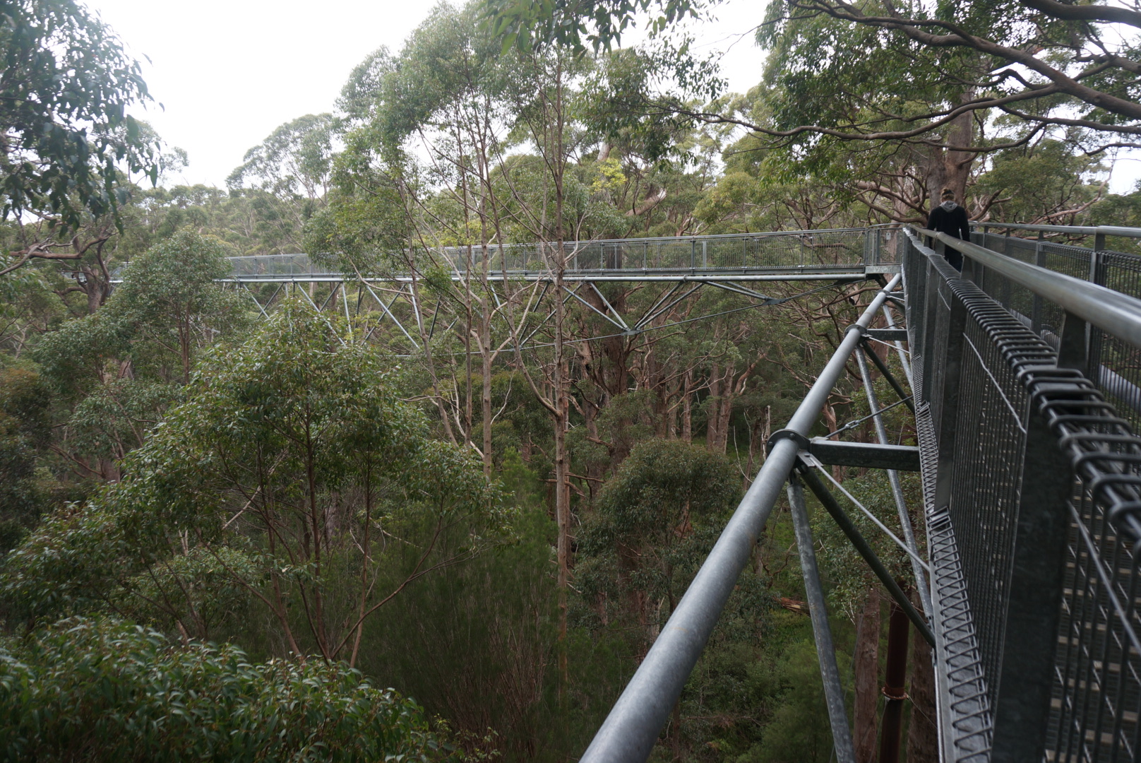Valley of Giants refers to giant red tingles (a type of eucalyptus) that form an impressive forest. The main attraction there is the Treetop walk ($21/person), where it is possible to wander in the canopy on the same level with parrots and other birds. The highest point was 40 meters above ground level, and the views were really nice.