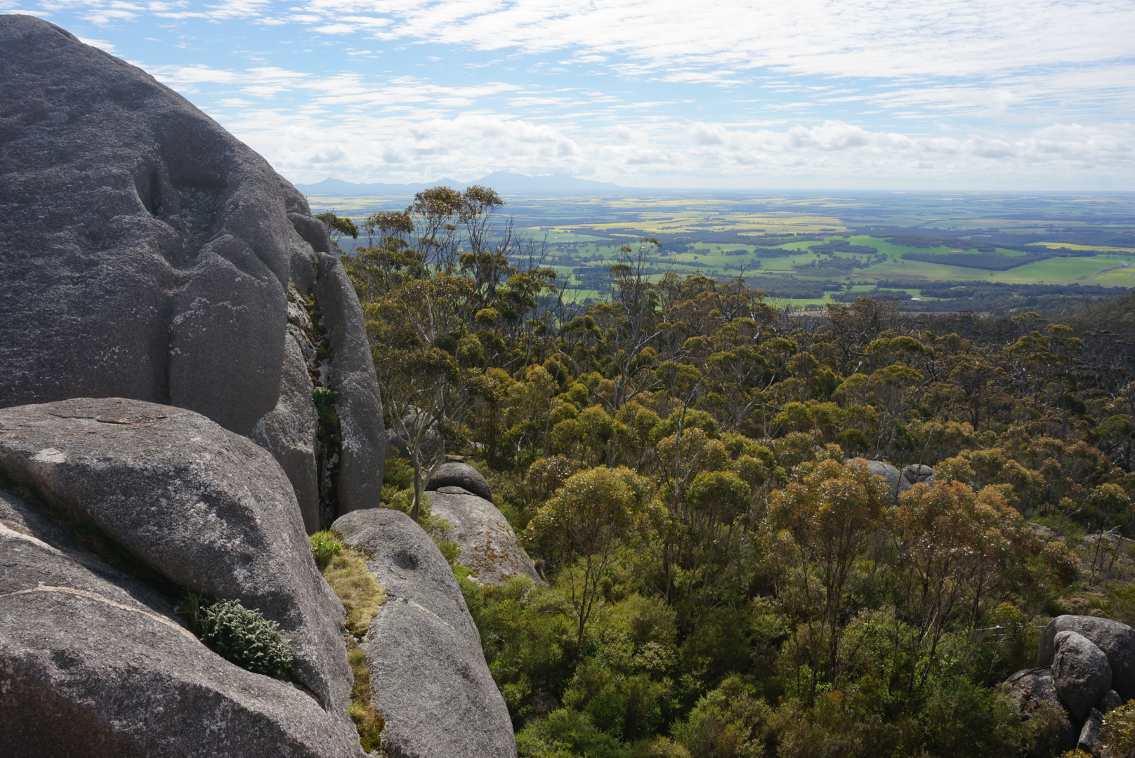 First morning we drove about 40 minutes from Albany to Porongurup national park. We did there 3 different walks. First we did the most famous one – the Granite Skywalk. It was a 2,2 km (one way) uphill walk to rock formations called balancing rocks. In the end there was a small climb between the rocks and a ladder that led to a platform that was bolted to the rock. From there we could see the trees below us and the city of Albany in the distance.