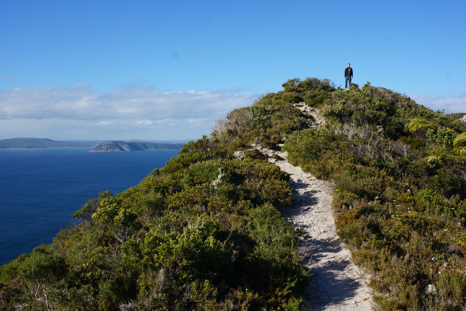 We didn’t do our research well about this walk, we just heard that it goes to the tip of little peninsula and is nice. So we went there for an evening walk. Only at the carpark we realized that the walk was 16km return and suggested time was 6-8 hours. We decided to walk for an hour and turn back to be in town before dark. An hour and a half later we stopped. We had walked through the masses of wildflowers on the slopes of a beutiful and narrow peninsula tip, with waves raging on one side and calmer turquoise water on the other. So there we stood, on a slope with magnificent view and a beautiful sunset, celebrating our existence in this universe with a couple of apples and you’d think nothing could make it more disgustingly romantic. And then we saw a whale breaching right under our noses. And it breached again and again, rolling in between in the water, having the time of its life, a wonderful sight. It felt good to turn back after that.