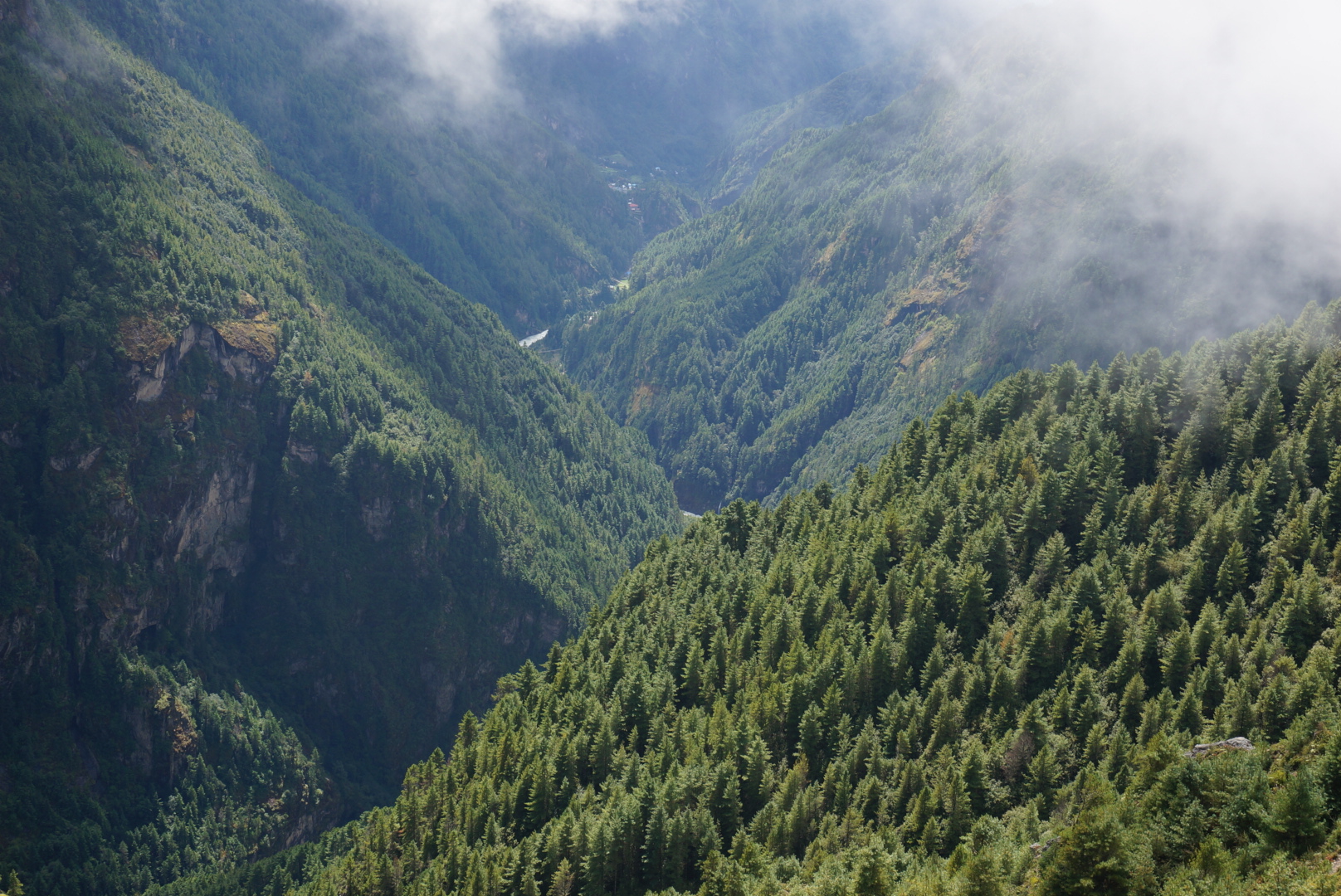The descent to Namche was not easy though. The way contained lots of ups and and downs, and our legs were tired after previous day. Tengbuche looked better though than the last time since we could see the panorama around it. On the way we saw also two women collecting yak poo from the trail and some Himalayan thars in the distance.