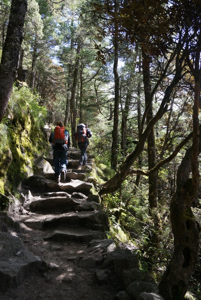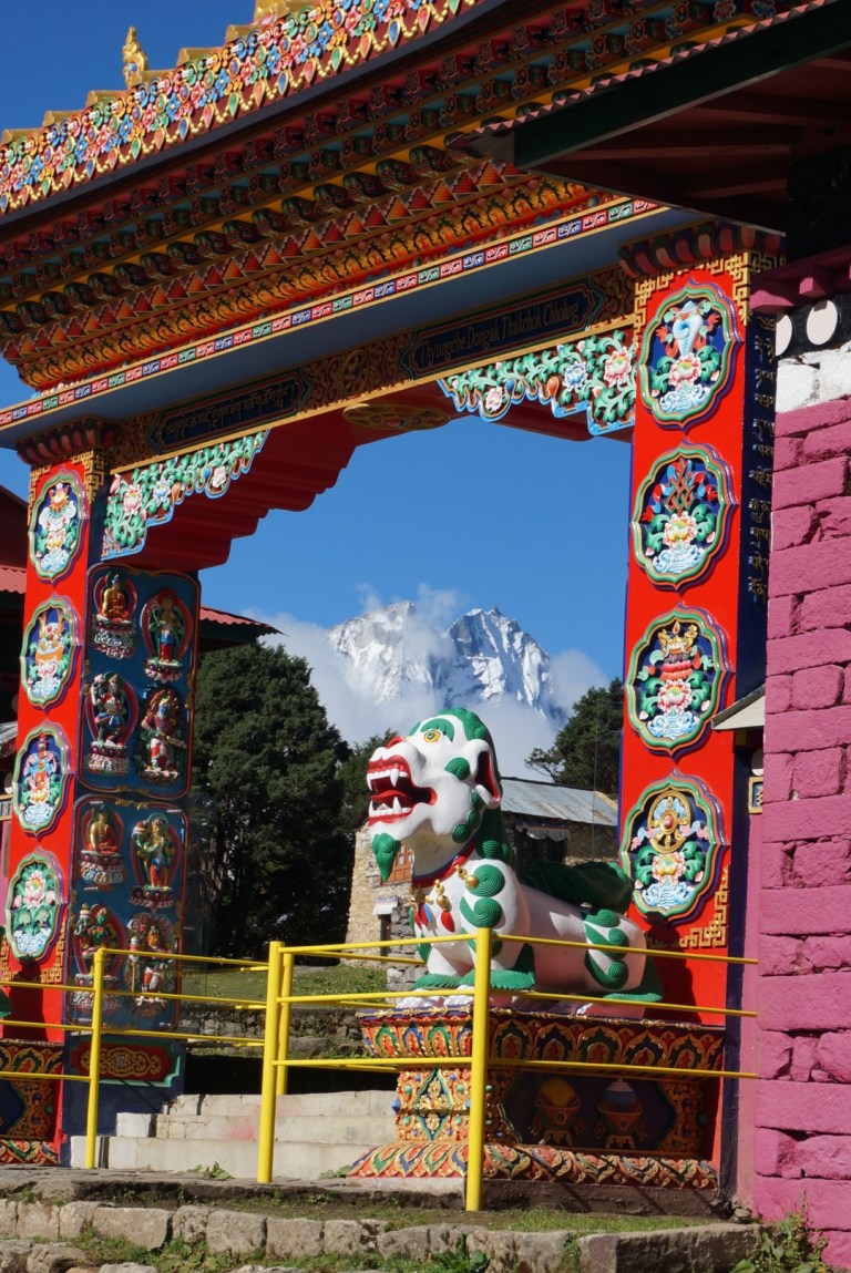 Our trail went down to the river valley and at the bottom was a checkpoint for the national park permit. We also stopped there for a tea and rest before a steep, steep climb to Tengbuche. On our way we met the Dutch couple we had met on our flight a couple days before. They didn’t have a porter with them and were carrying all their equipment by themselves so we passed them quite easily.