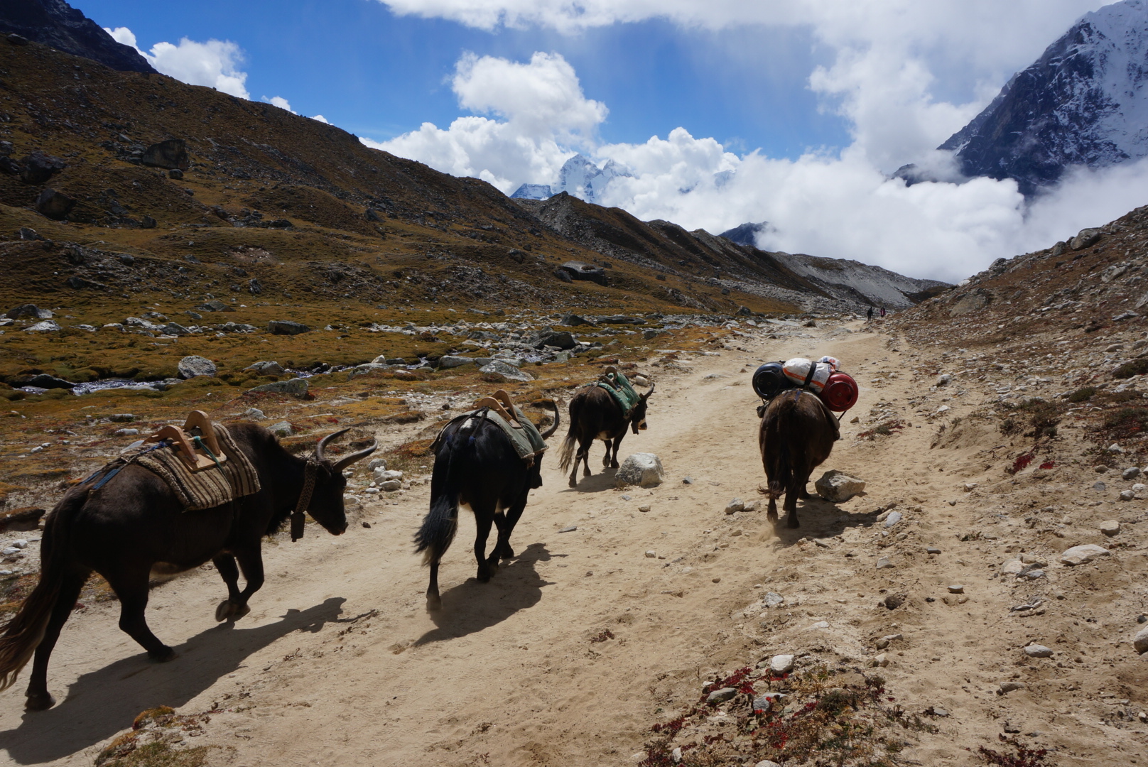 Today was the day. Everest Base Camp was waiting for us. We had slept surprisingly well (although woke up at 5.30am). When we were having breakfast we saw yaks getting their daily load. And then we left around seven.