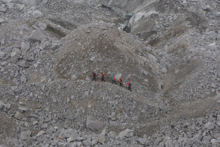 We actually had lunch at Gorak Shep half past nine, probably the earliest lunch we’ve ever had. Troubling news was that there were three groups with sick people waiting for helicopters that could not come due to bad weather. They were thinking about taking poor people down with horses.