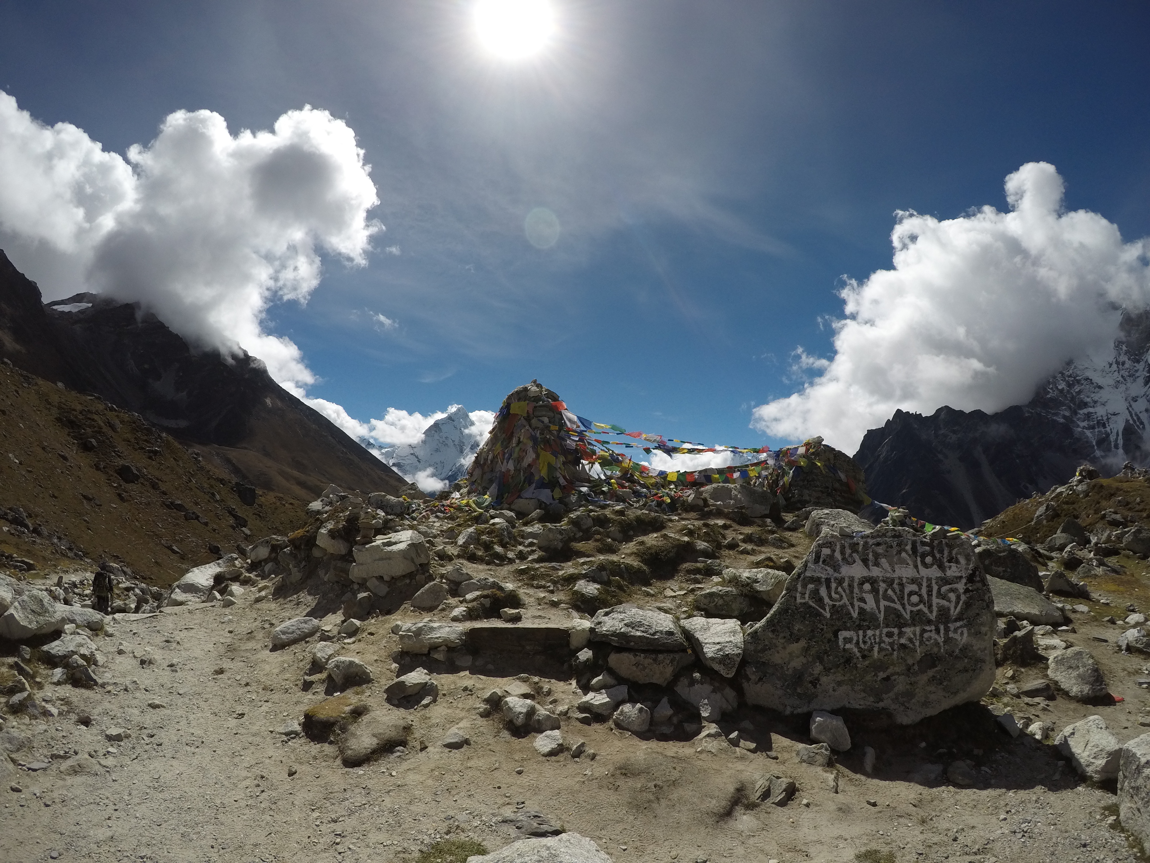 The sun came out and started to shine and it was warm, but we did not sweat, cause in this altitude you run out of breath before you start to sweat. Accompanied by Raj’s “slowly, slowly”, we ascented. We were feeling like snails with concrete feet that had been smoking all their lives.When we got to the top, we saw all these memorials to those who died on Everest. It looked like there were so many of them…