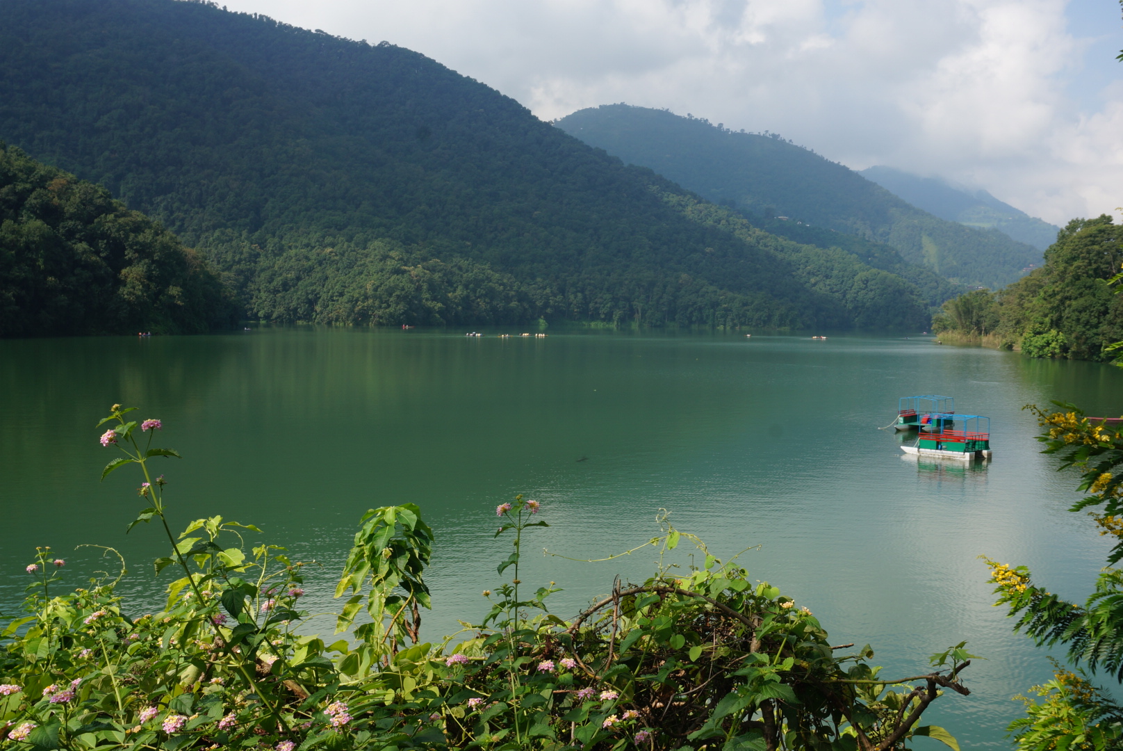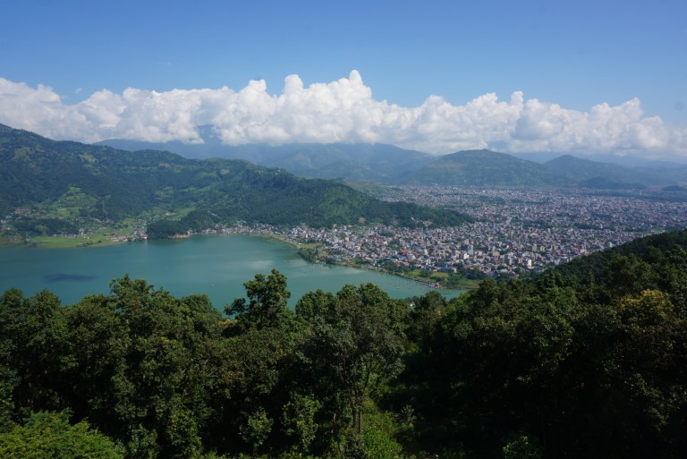 PokharaPokhara seemed like a more pleasant city, and it is a place for a little getaway for locals as well. It is located on a lake and looks at green hills covered in lush rainforest. The lake is popular for taking rowboat rides and there is even a Hindu temple in the middle of the lake. We didn’t go to that temple but took a walk to World Peace Pagoda, which sits on the top of the hill and from there you get a view over Pokhara and, if you’re lucky (which we were not), a view over Annapurna region in the distance. To get there we had to go around the lake and climb in the rainforest (hot and wet!).