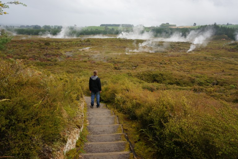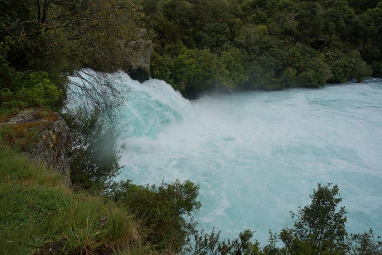 From Whakapapa village we drove to Taupo. It’s a small holiday town located next to the biggest lake in NZ also named Taupo. First we headed to Huka Falls. This big and blue waterfall is apparently the most visited attraction in Taupo.