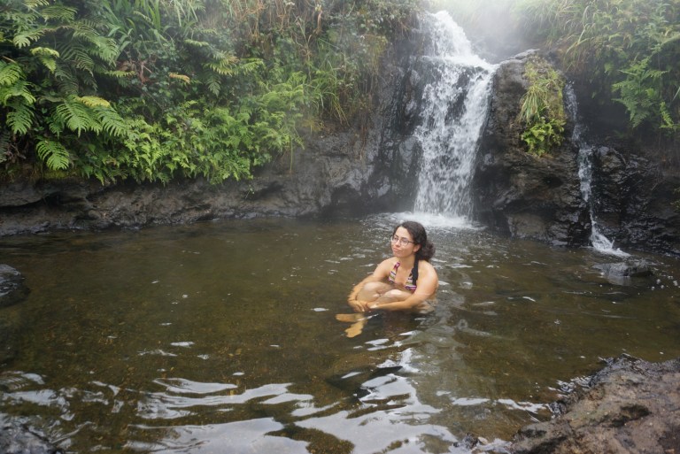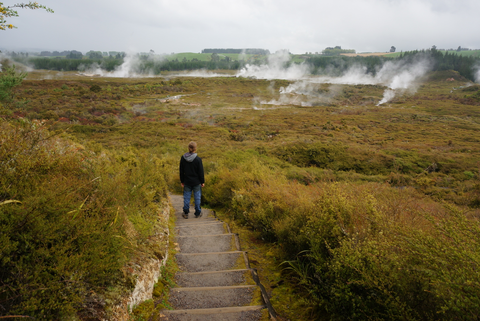 From there we started walking along the river in look for natural hot pools. After walking for an hour we found a small hot stream that connected with the river. There were not so many people there so we tried to find a spot for ourselves. First we tried a spot a little bit upstream, but there the water was too hot and shallow. The best spot was just under the bridge where the stream and river met. We relaxed for a while and headed back to our car at Huka Falls parking lot.
