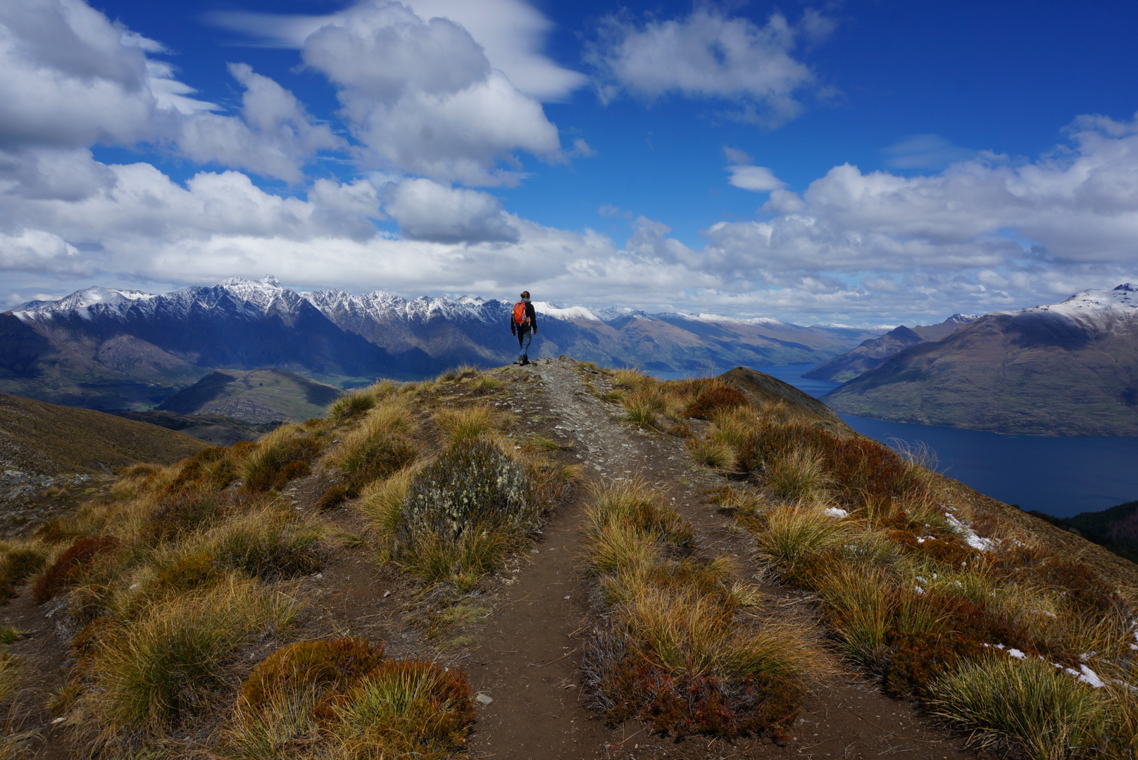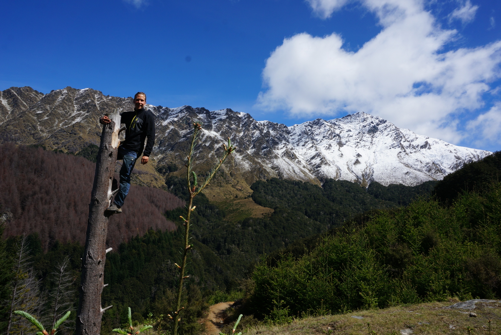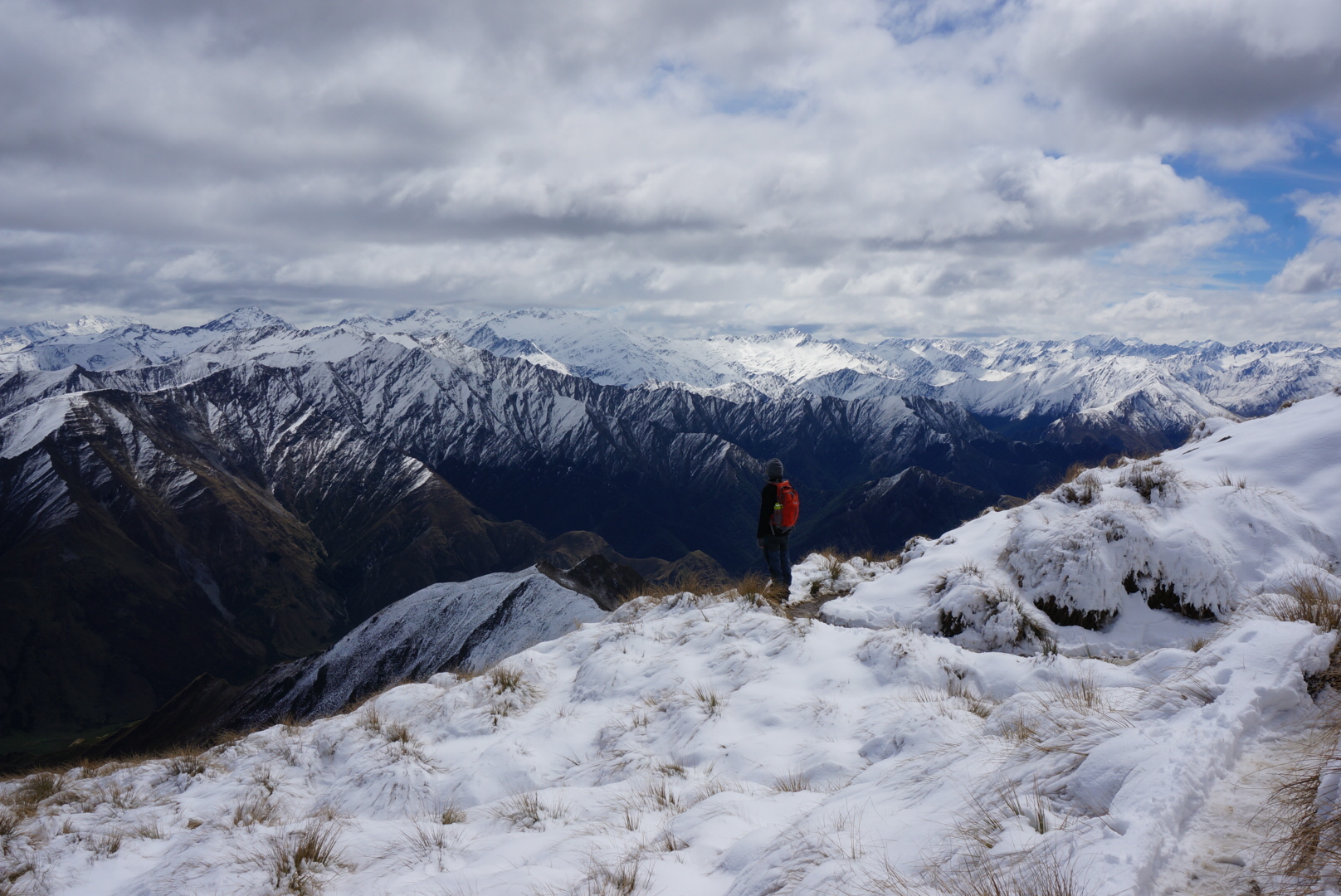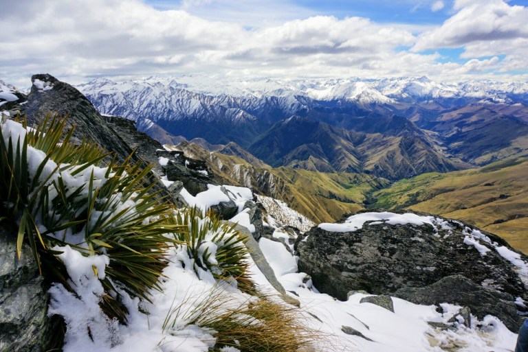 This continued to so called Ben Lomond saddle. After getting a little above that point you could not see only the gorgeous views over lake Wakatipu and surrounding mountains (first picture) but also the mountains behind Ben Lomond. And there are a lot of them, sugary caps as far as you can see. By climbing all the way to the summit (1748m), there is an extraordinary 360° view that is really worth all the effort of getting there.